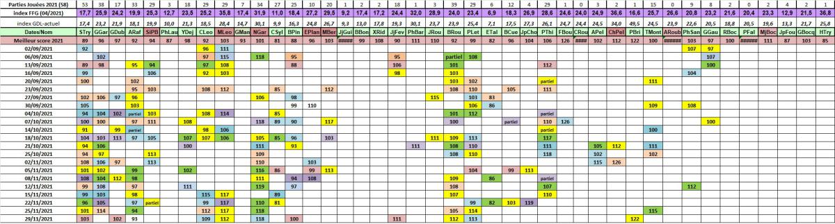 Résultats des dernières parties jouées le Jeudi: cliquez sur la date choisie ci-dessous