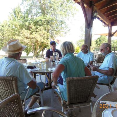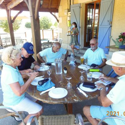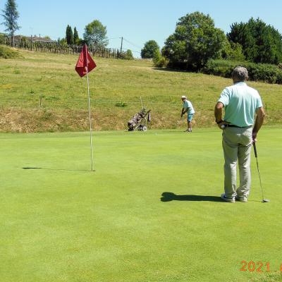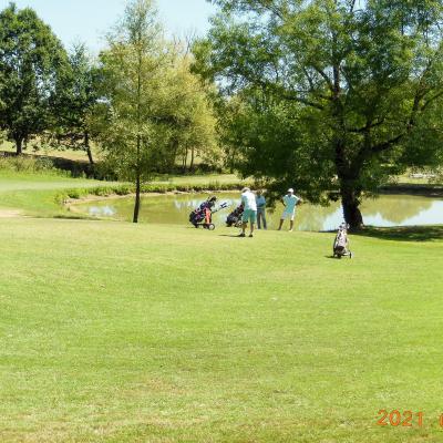 Nous revenions pour la deuxième fois en "terre anglaise", sur cet agréable parcours 9 trous de La Barthe, à tombeboeuf (47). Les nouveaux propriétaires sont charmants et nous ont très bien reçus, du café/croissant d'arrivée au repas , incluant aussi, 2 tours d'un parcours agréable, technique avec des greens très bien entretenus. Quelques piquets jaunes ont eu à souffrir de la précision de Gilles et Serge.... Merci à Samantha, son mari et son équipe. La chaleur a été relativement supportable, quelques courants d'air bienvenus par moments... voir résultats et photos plus bas...