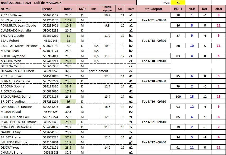 JEUDI 22 JUILLET 2021 au Golf de MARGAUX(33)