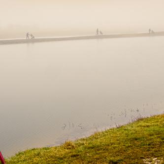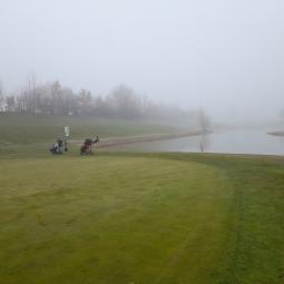 Brouillard toute la journée, visibilité entre 90 et 150 m, dommage car parcours varié, avec de sympathiques plans d'eau. Bon accueil, repas du terroir: cassoulet et tarte pommes/pruneaux... tarif imbattable.