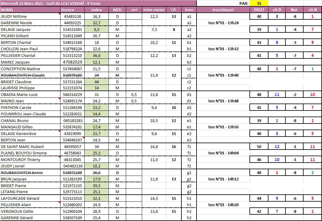 30 golfeurs et un accompagnateur (bienvenue François) . Bienvenue aussi à Geneviève et Jacques Delage