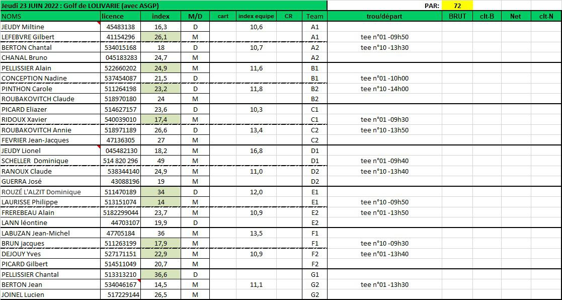 Quota 40 participants (golf), inscriptions, cliquez sur ce texte jusqu'au 19 Juin 2022 ou avant si quota atteint