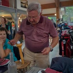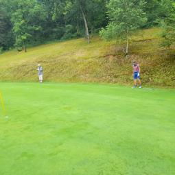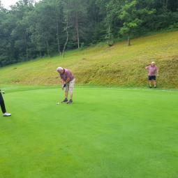Tout s'annonçait bien , 7 départs répartis sur le 1 et le 10, à partir de 09h30, malheureusement vers 12h00, éclairs, tonnerre, corne et abats d'eau, grace à la vigilence du directeur du golf et à ses employés nous sommes rentrés à temps pour ne pas être trempés. Nous avions fait entre 6 et 9 trous!!!! beaucoup sont réstés sur leur faim.