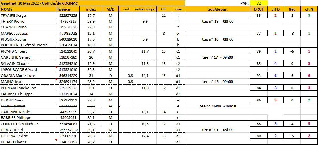 SORTIE du 20 MAI 2022, au Golf du/de COGNAC à St Brice (16)