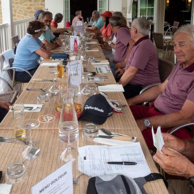 Petit contingent de vadrouilleurs hier à Cognac (21 golfeurs et 22 convives), pourtant un magnifique golf pour ceux qui ont joué et un restaurant de qualité avec un menu original.