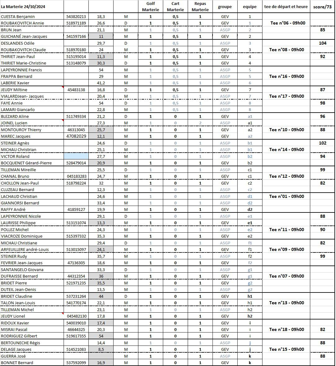Nous étions 52 Golfeuses/Golfeurs au total pour cette session avec nos amis de l'ASGP. Une magnifique journée d'automne sur un parcours de belle qualité, valloné et bien arboré.