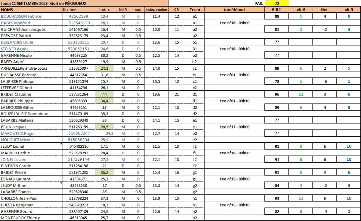 Sortie du Jeudi 11 Septembre 2025, Golf de Périgueux