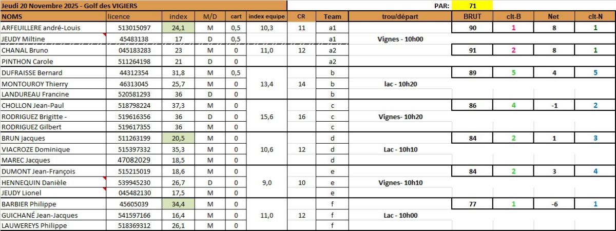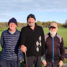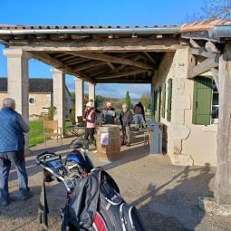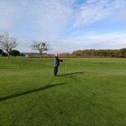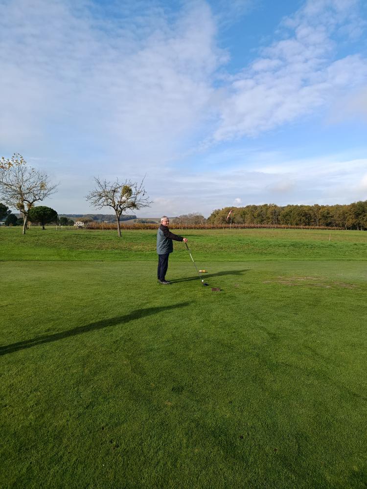 Belle mais fraîche journée (de +2 à +7°c) de golf sur des parcours- Vignes et Lac- bien entretenus, la rosée matinale freinait un peu les putts!!!