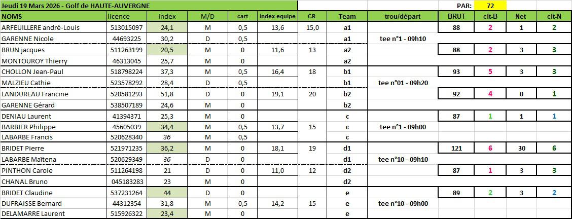 19-03-2026: Golf de HAUTE-AUVERGNE
