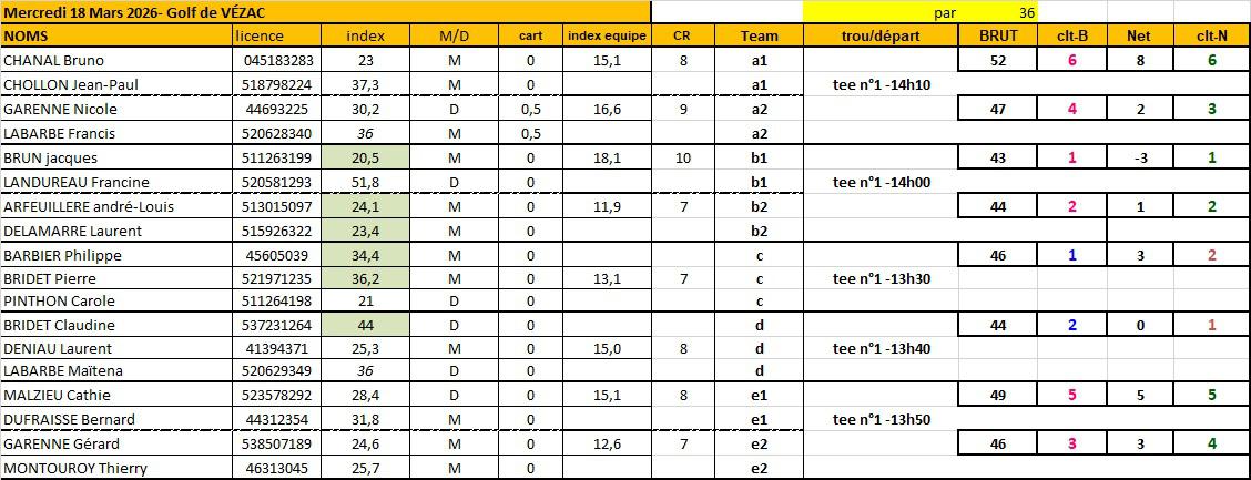 18-03-2026: Golf de VÉZAC à VÉZAC